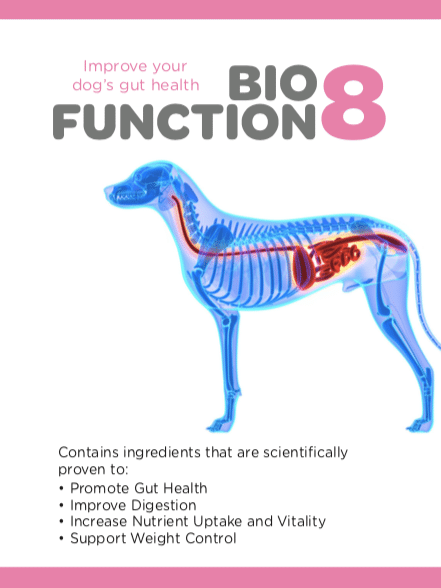 For more on the science behind BioFunction8, check out our article “Eight reasons why BioFunction8 alleviates the symptoms of gastrointestinal disease in your dog“.