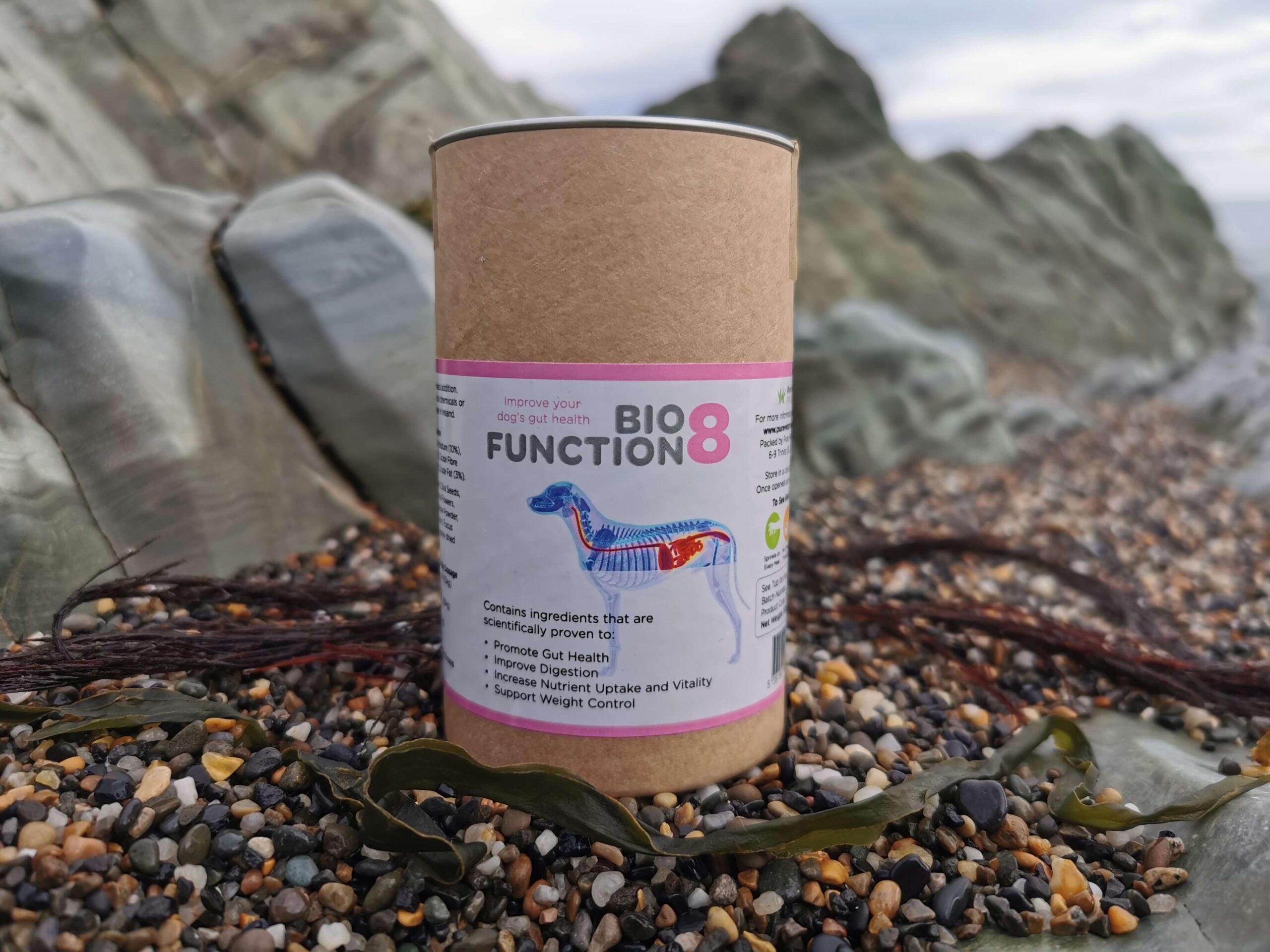 Finally, BioFunction8 includes a blend of 3 Irish, air-dried seaweeds (2 brown and one green) which are not only wonderfully antiinflammatory and antioxidative in their own right but are also deeply nutritious. This is most welcomes in dogs with gut issues which, if you looked, will have quite erratic vitamin and mineral profiles from the turmoil in their tummies.